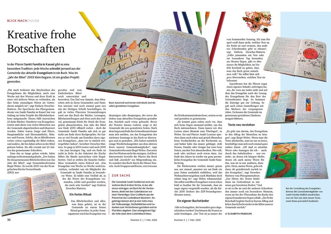 Unser Evangeliar wird in der Ausgabe vom Februar 2026 im Bonifatiusboten, Katholisches Magazin für das Bistum Fulda, vorgestellt